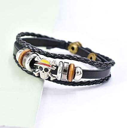 Luffy Jolly Roger with Braided Leather Band